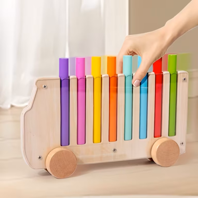 Värvide sorteerimise auto on hariv puidust mänguasi, mis on loodud toetama lapse varajast arengut läbi mängu ja koos tegutsemise.