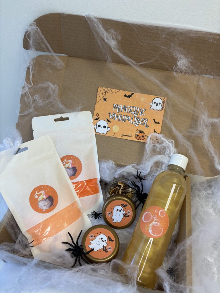 Kihisev vahupulber “Hõljuv” vesi Kuivatatud apelsiniviilud Kummeliõied Saialillepuru Ämblikud