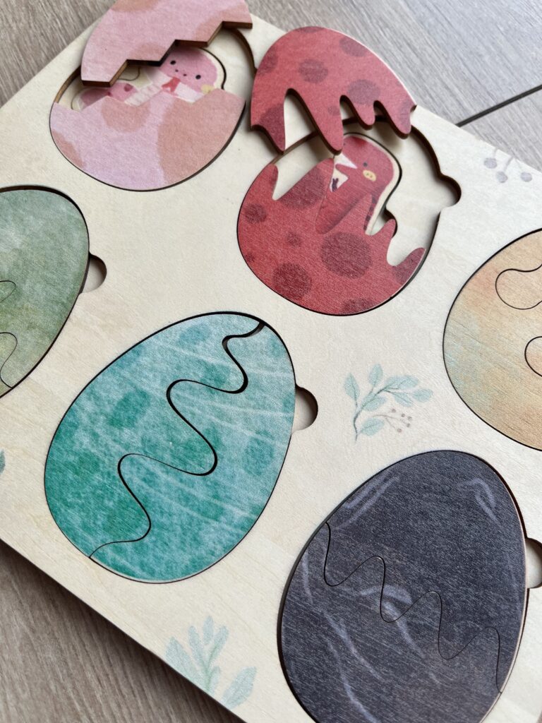 Kaunis ja rahulikes toonides puidust õppemäng väikestele avastajatele. Komplektis on 6 muna, millest igaüks koosneb kahest omavahel sobituvast osast. Laps saab munad õigesti kokku panna, avastades samal ajal sees peituvaid tegelasi ja mustreid.