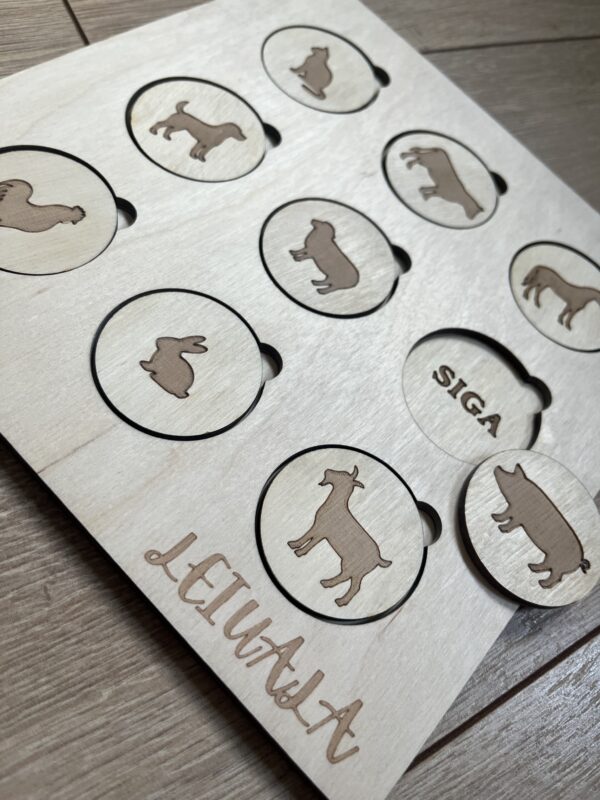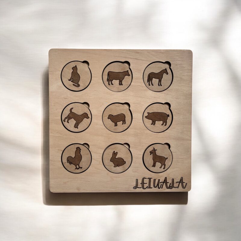 See armsa disainiga Leiuala puidust õppemäng kutsub väikeseid uurijaid avastama, millised loomad elavad talus.