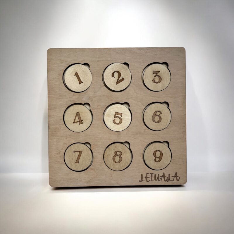 Leiuala puidust numbrimäng aitab väikestel õppijatel avastada numbrite maailma käed-külge viisil – sobitades, tõstes ja uurides. Iga number on graveeritud selgelt ja täpselt, et laps õpiks nii kuju kui ka järjestust.