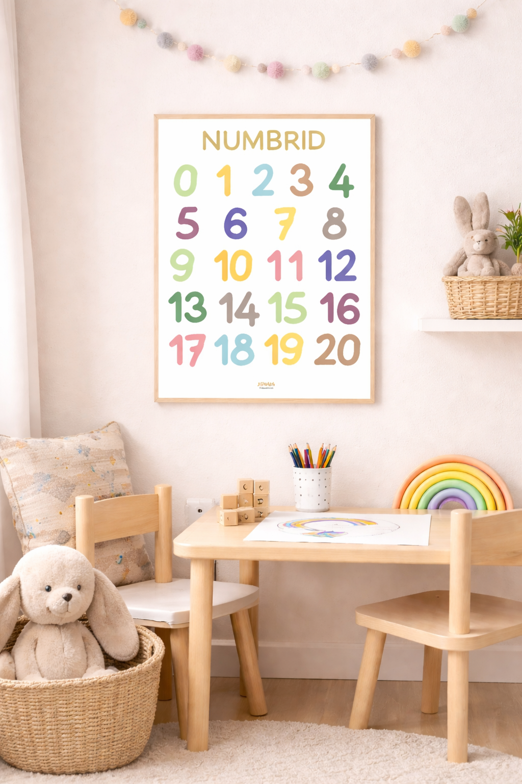 Numbrite plakat on lihtne ja praktiline õppevahend, mis toetab lapse loendamisoskust ja numbrite tundmist igapäevase mängu ja õppimise kaudu.